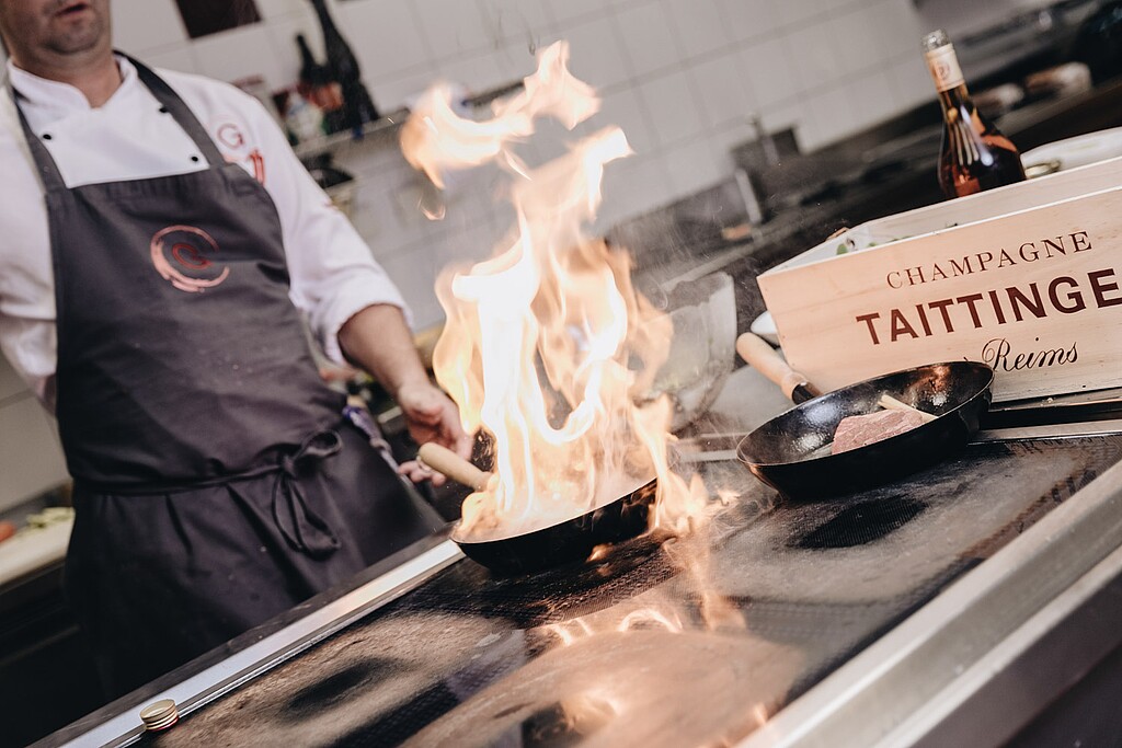 Wir sind bekannt für unsere ausgezeichnete Küche (Küchenchef Reinhard ist seit 20 Jahren bei uns), für unsere weltweit einzigartige Sammlung an über 1.000 Riedel Gläsern und über 40 Riedel Dekantern, sowie unser Wissen über das richtige Glas und das passende Getränk.