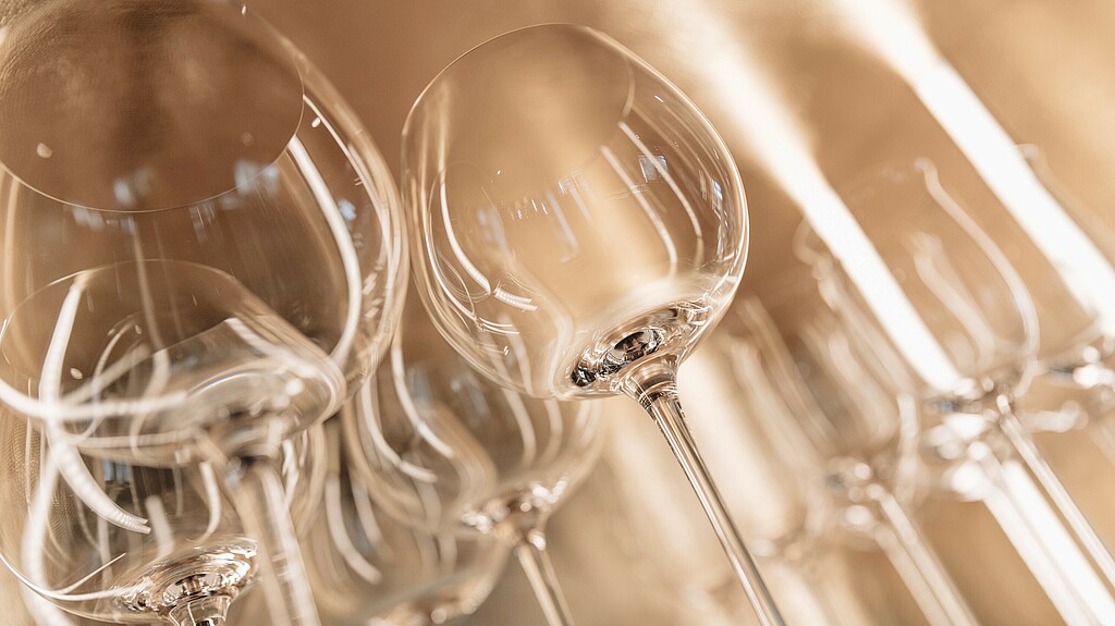 “Jedes Glas ist eine Einzelanfertigung: die Oberteile in Form geblasen, Stiel und Boden von Hand geformt nach Fertigungsmethoden, die zu Christi Geburt entwickelt wurden.” – Zitat Firma Riedel.