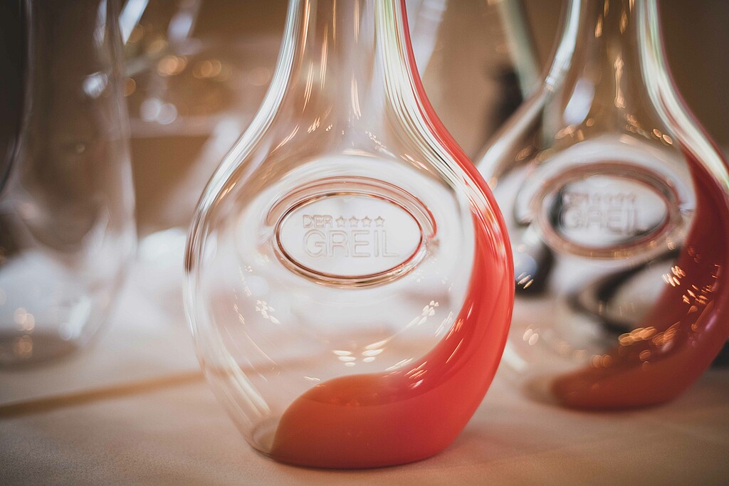 Es wäre nicht Sepp Greil, wenn es keinen hauseigenen Dekanter gebe. Maximilian Riedel war persönlich anwesend, als der Greil Dekanter mundgeblasen und der Logo-Stempel von Sepp in das noch heiße Glas gepresst wurden. „Ein bewegender Moment“, Sepp Greil.